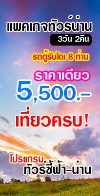 รหัส NAN 213 โปรแกรมทัวร์น่าน บริษัททัวร์น่าน แพคเกจเที่ยวน่าน 3วัน2คืน 5500 บาท รถตู้จาก กทม.